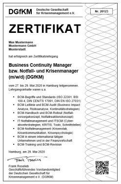Offizieller Zertifikatslehrgang der Deutschen Gesellschaft für Krisenmanagement e.V. (DGfKM)